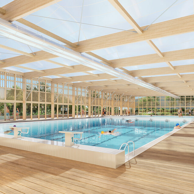 Aqua’val Sèvre proposera un concept de bassins extérieurs couverts, un choix audacieux que peu encore de piscines en France ont adopté.