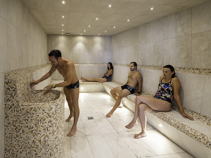 Le hammam produit un effet déstressant et purifiant. La vapeur d'eau associée à un fort taux d'humidité permettent d'agir sur les muscles. On ressent un véritable relâchement du corps.